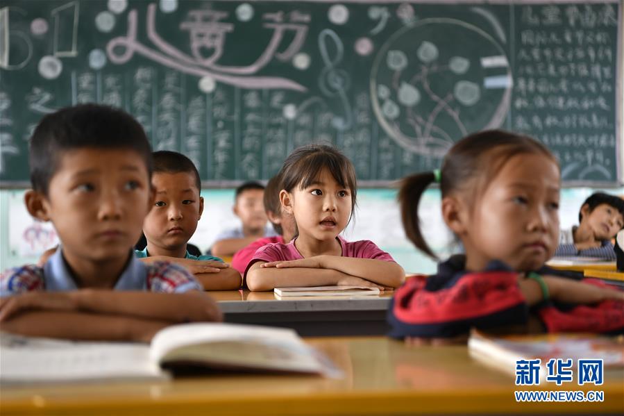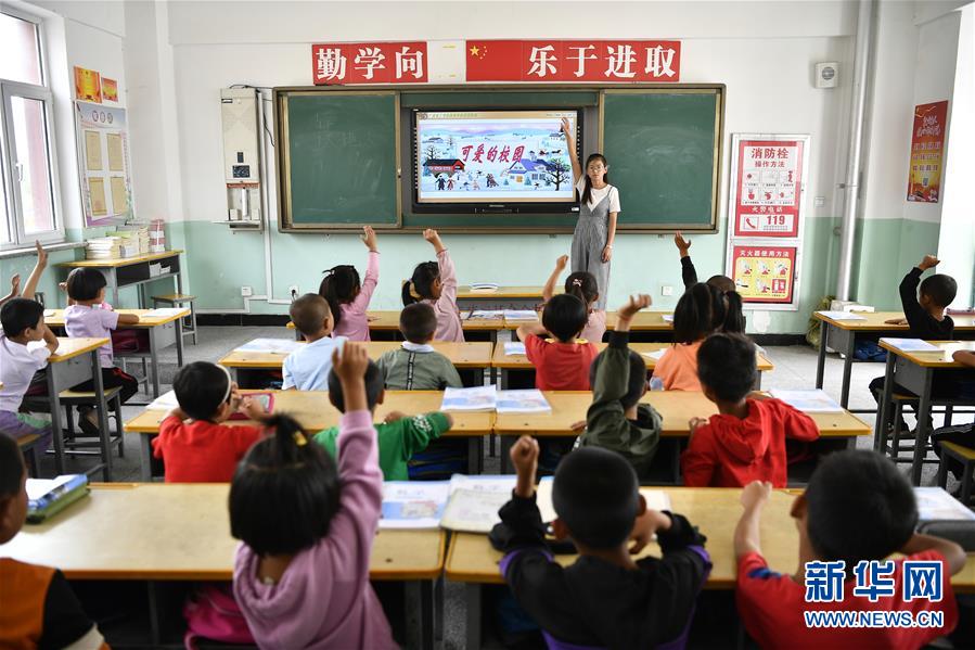 寧夏銀川市永寧縣閩寧鎮原隆村原隆小學,一年級的孩子們在上課(2019年9月3日攝)。 新華社記者 王鵬 攝