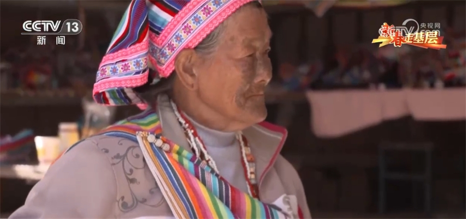 現(xiàn)在獨龍江鄉(xiāng),近千位獨龍族婦女和她一樣,在用傳統(tǒng)的方式編織著走向世界的獨龍?zhí)海钗氖四棠叹褪瞧渲兄唬悄壳蔼汖堊鍍H有的17位文面女中的一位。當(dāng)記者找到她時,老奶奶正在熟練得玩手機(jī)。自從2022年5G網(wǎng)絡(luò)覆蓋了獨龍江鄉(xiāng)的6個行政村后,李文仕奶奶除了務(wù)農(nóng)織布、唱歌跳舞,還培養(yǎng)了一個新的愛好,就是網(wǎng)上沖浪。
