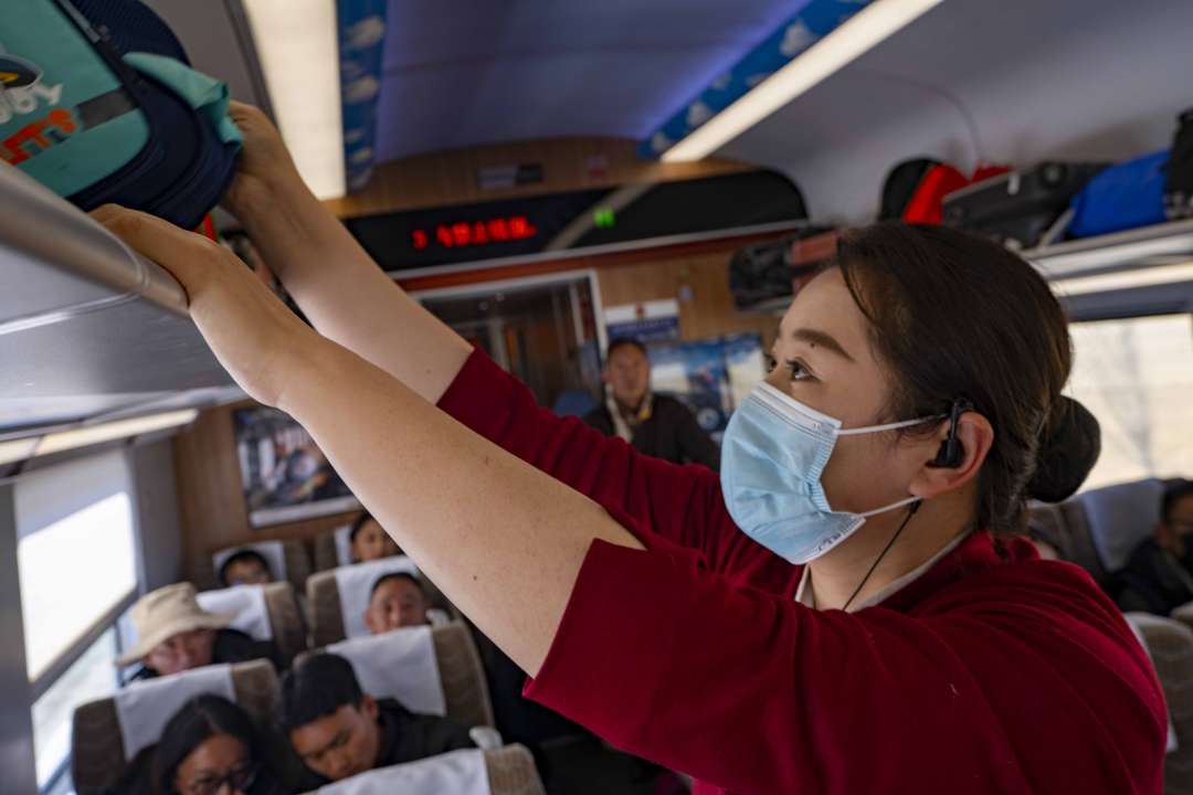記者跟隨乘務員,體驗他們一天的工作。 隨著春節及藏歷新年假期進入尾聲,西藏春運迎來返程高峰。2月17日,記者跟隨來到了青藏鐵路拉薩至日喀則的列車上,通列車員一道感受春運高峰的忙碌。 一趟車上,列車員格外忙碌。發車前,青藏鐵路動車組拉林段四組班長列車員李丹站在車門口,對上車的旅客反復叮囑:“上車注意腳下安全!”;車門關閉后,她又忙不停蹄地在車廂內來回穿梭,幫旅客檢查行李,“我幫您整理一下您的行李!”;列車啟動后,李丹又抓緊用給旅客提示“列車內禁止吸煙!”