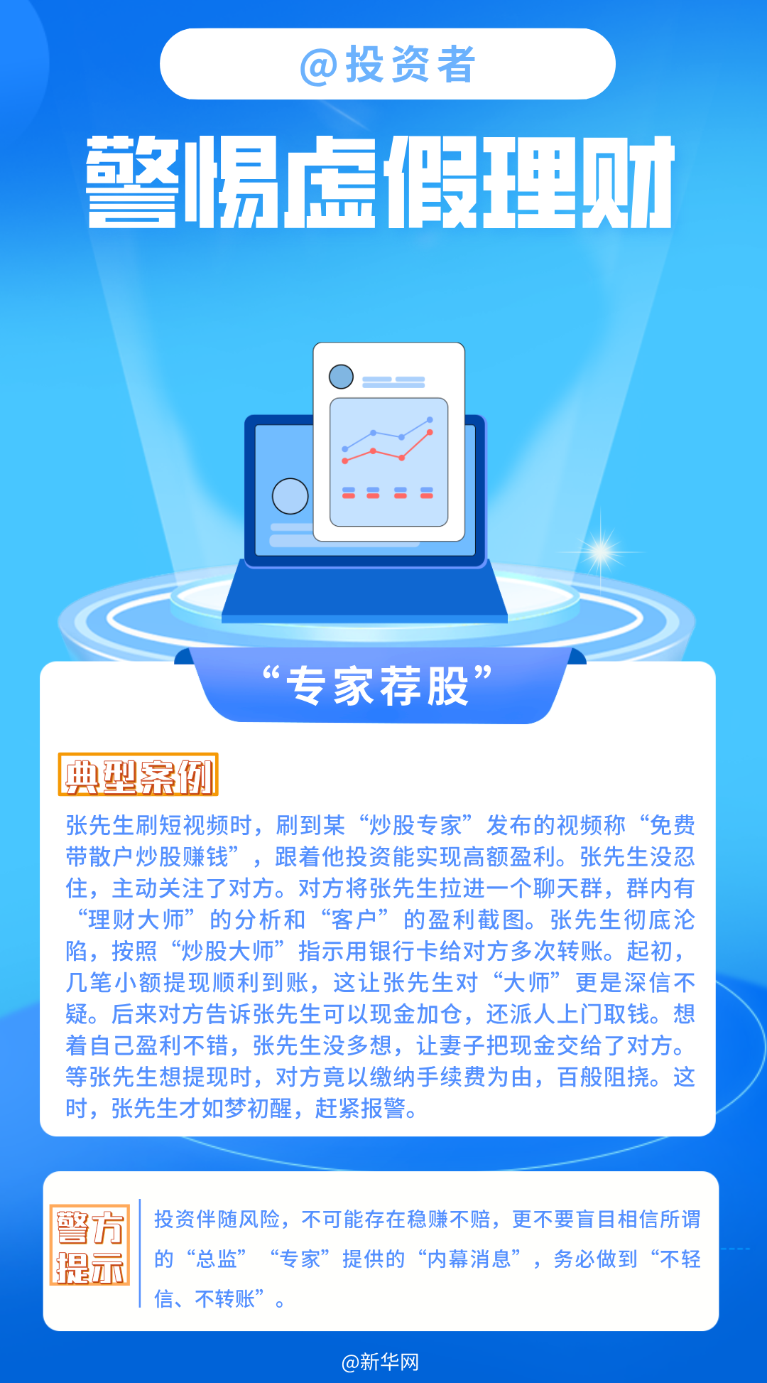 虛假網絡投資理財詐騙系2025十大高發電信網絡詐騙類型之一。“名師指導”“內幕消息”“穩賺不賠”......這些都是詐騙分子的套路,廣大投資者們務必要提高警惕、仔細甄別。