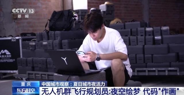 上海中心大廈商務(wù)運營有限公司總經(jīng)理 梅雪:隨著國家的免簽政策,這個假期是境內(nèi)境外的客人雙增。現(xiàn)在夜間的客人增量非常大,所以我們也采取了很多的一些便民措施,比方說延長我們的營業(yè)時間,然后讓游客們靜靜心心地在上海之巔看完整個城市的景觀,也充分地了解我們上海“魔都”的魅力。 重慶:業(yè)態(tài)創(chuàng)新百花齊放 催生多元新職業(yè)群體 上海的夜晚,不光流光溢彩,更是充滿了活力,給整個城市都注入了一股蓬勃生命力。而隨著新的消費場景誕生,也催生了不少新職業(yè)。 這幾年,重慶的夜景那可是火遍了全國,尤其是在主城兩江四岸核心區(qū)域啟動的常態(tài)化無人機燈光秀展演,作為一種夜間娛樂形式吸引了大量國內(nèi)外游客,由此增加的消費活動所帶來的漣漪效應(yīng)為當?shù)亟?jīng)濟作出很大貢獻。光影魔法是如何點亮重慶夜空的呢?讓我們一起去看看背后的故事↓ 無人機群飛行規(guī)劃員:夜空繪夢 代碼“作畫” 夏夜以來,每周六,5000架無人機在長江、嘉陵江交匯處就會來一場表演,當人們沉醉于流動的光影時,鮮少有人留意,這背后凝聚著一群人的專注與付出。