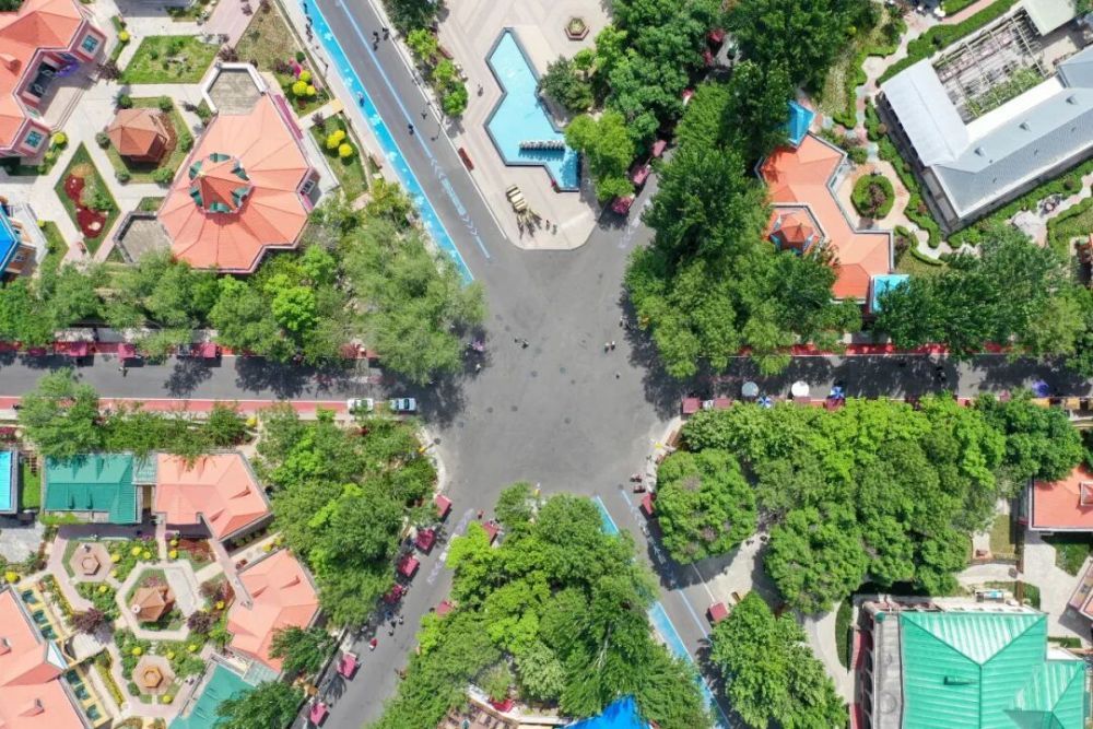 在伊犁哈薩克自治州伊寧市拍攝的六星街景區中心廣場(無人機照片)。新華社記者 丁磊 攝