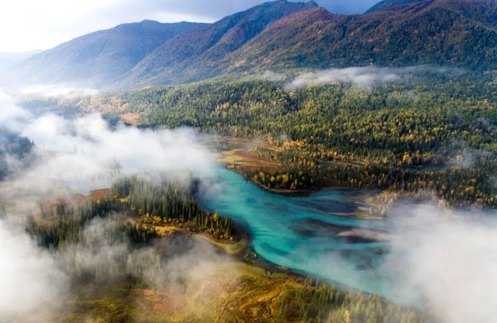 無人機拍攝的喀納斯景區風光。新華社記者 王菲 攝