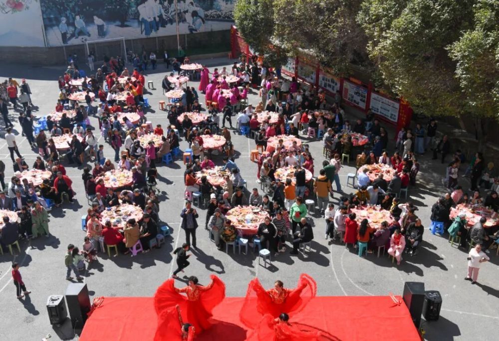 人們在烏魯木齊市天山區固原巷社區舉辦的活動中品嘗百家宴,欣賞文藝演出。新華社記者 王菲 攝