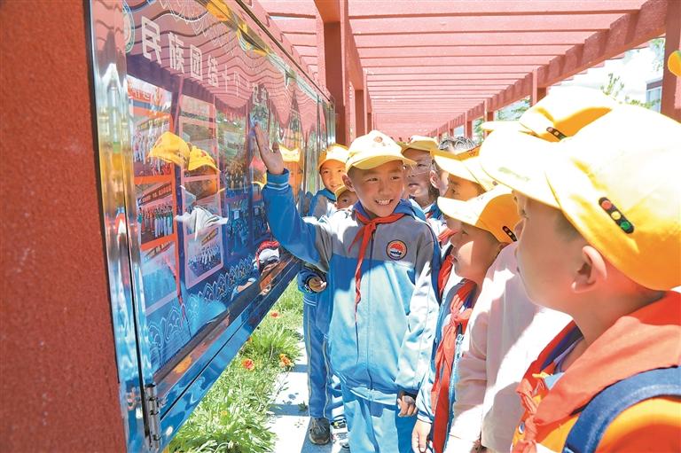 拉薩市墨竹工卡縣南京實驗小學學生參觀"民族團結教育主題公園"主題苑。記者 唐斌 通訊員 洛克 攝