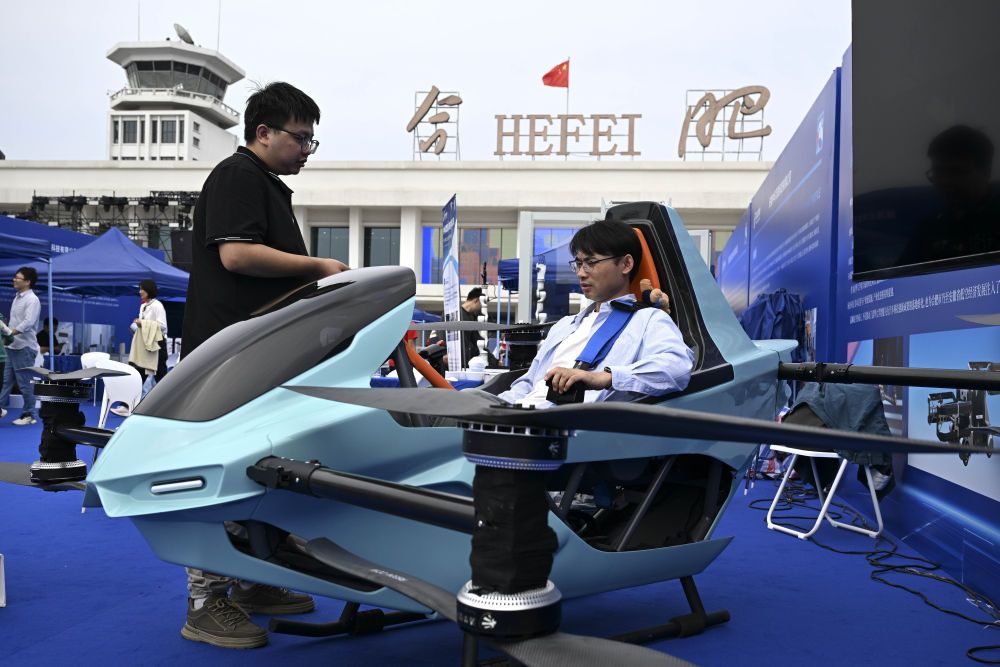 2025年9月21日,觀眾在2025世界制造業大會“全空間無人體系成果展”上體驗由安徽猛獅航空科技有限公司展出的一款無人駕駛飛行摩托。新華社記者 黃博涵 攝