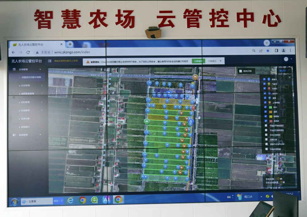 “現在種植和收割不僅用到了各種無人駕駛農機,物聯網設備也能承擔許多工作?!彼钢r田旁的苗情監測攝像頭說,當發現水稻出現缺水等情況,農戶通過App簡單操作即可實現精準灌溉。