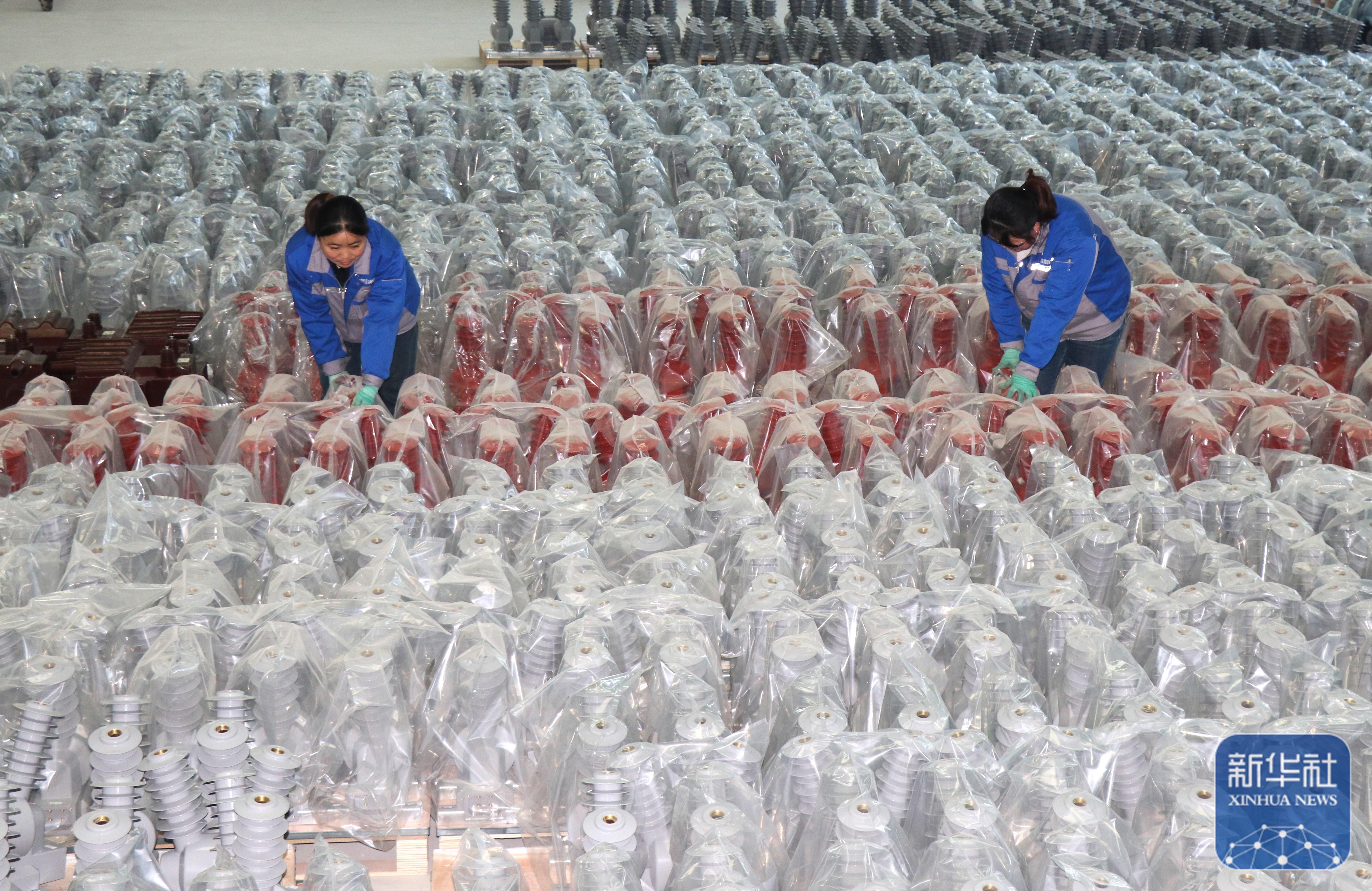 ↑ 1月5日,工人在江蘇連云港經濟技術開發區的重山風力設備(連云港)有限公司車間生產線上忙碌。新華社發(王春 攝)