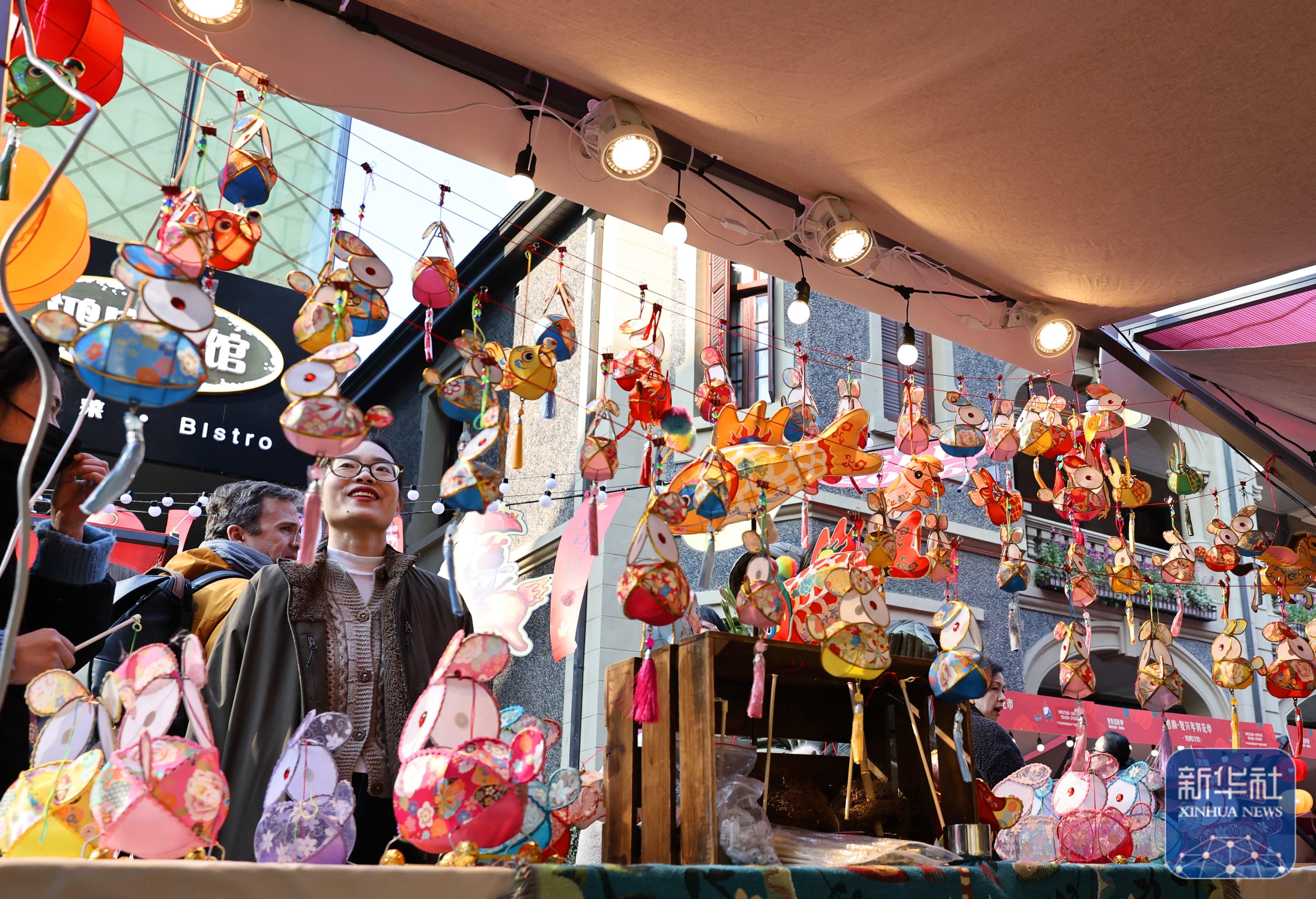 ↑1月23日,上海思南年宵花市上的傳統彩燈手工藝品吸引游客駐足觀看。新華社記者 方喆 攝