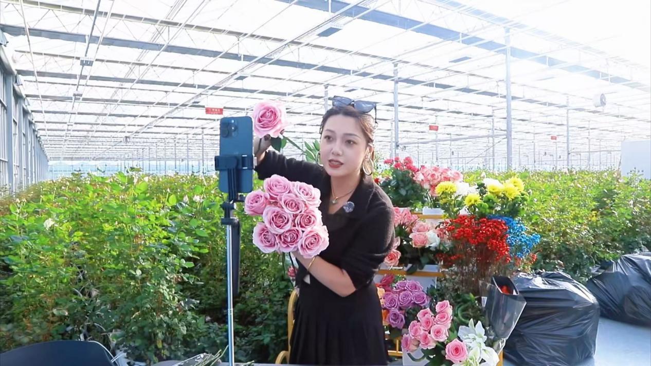 智能溫室中 主播帶貨售花