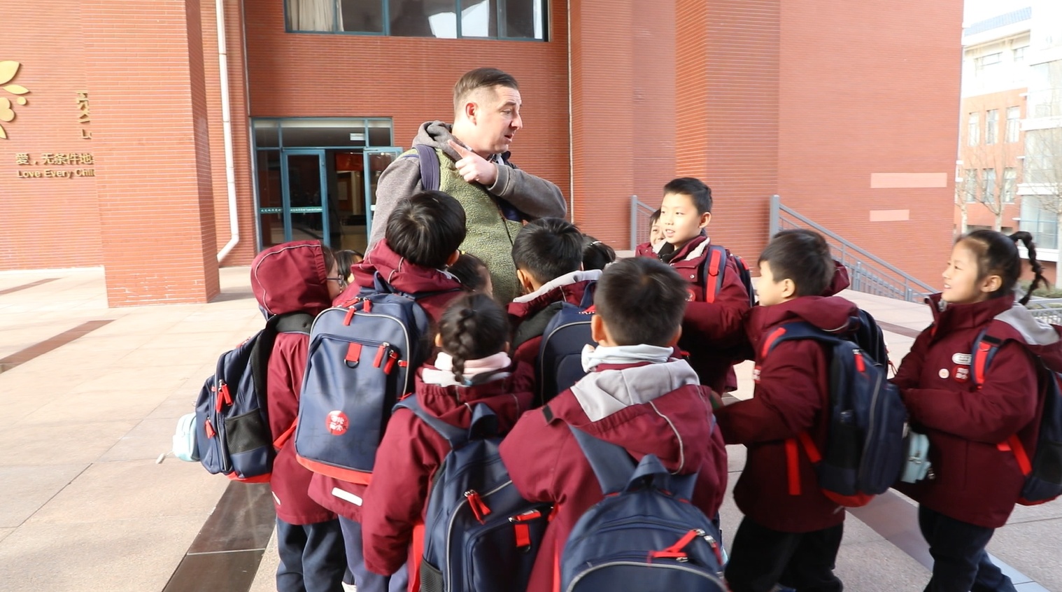 清晨的陽光,透過山東淄博高新區外國語學校一年級教室的窗戶,灑在一群稚嫩的臉龐上。阿德里安正站在講臺上,面帶微笑,為孩子們教授英語課。