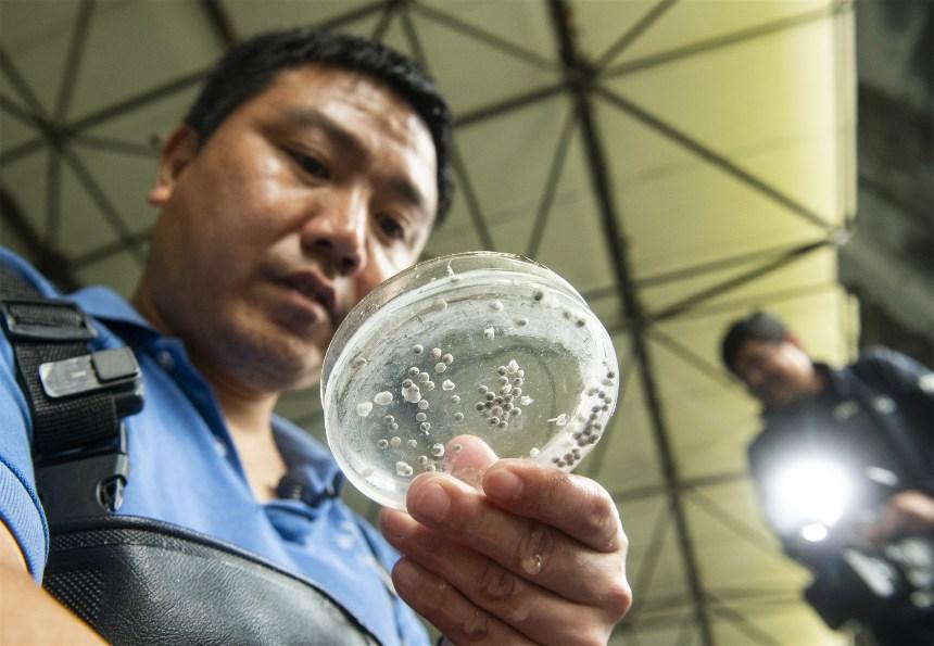 王飛觀察胭脂魚卵。冉孟軍攝