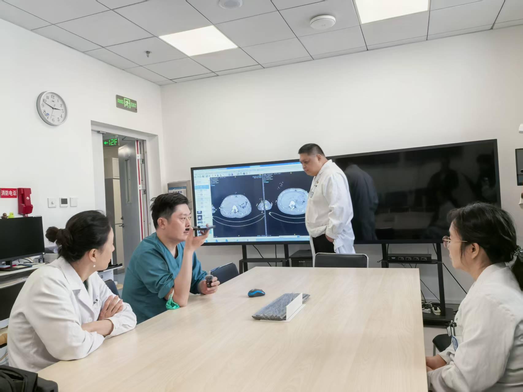 會議室內,CT影像清晰地投射在屏幕上。來自不同科室的專家們圍坐在桌前,仔細聽取放射影像解讀。大家爭分奪秒,敲定下一步治療細節,只為給這個年輕的生命創造更多機會。