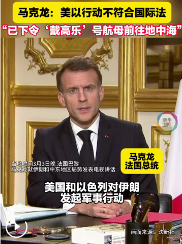 馬克龍:法國不認可美以對伊朗發起的軍事行動