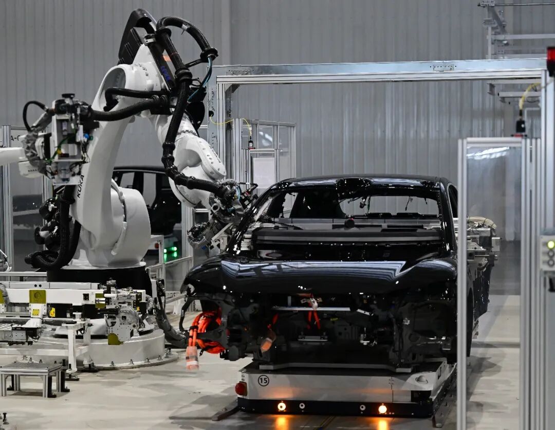 圖為記者在安徽合肥市新橋智能電動汽車產業園蔚來第二工廠拍攝的新能源汽車生產線。新華社記者周牧攝