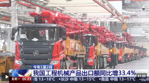 視頻丨今年1至2月我國工程機(jī)械產(chǎn)品出口額同比增33.4%