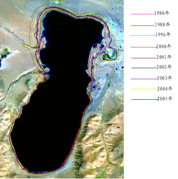這是巴木錯湖泊1980年至2005年水面面積遙感動態變化監測圖。(受訪單位供圖)