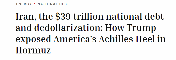 文章認為,受益于“石油美元”體系,美國才能以低廉的成本借款,持續出現財政赤字,同時還能保持美元作為世界儲備貨幣的地位。當盟友發現美國無法有效維持航道開放時,會對“美元—安全”契約產生懷疑,從而加速資產多元化,拋售美債并尋找替代貨幣。