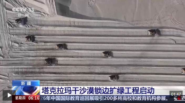視頻丨塔克拉瑪干沙漠鎖邊擴(kuò)綠工程啟動 織密綠色防護(hù)網(wǎng)