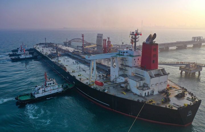 2025年12月18日,一艘裝載著17.9萬噸石化原輔料的船舶泊入國投洋浦油儲碼頭30萬噸級原油泊位(無人機(jī)照片)。這是海南自由貿(mào)易港正式啟動(dòng)全島封關(guān)后洋浦港口岸第一批通關(guān)的“零關(guān)稅”石化原輔料。新華社記者 郭程 攝