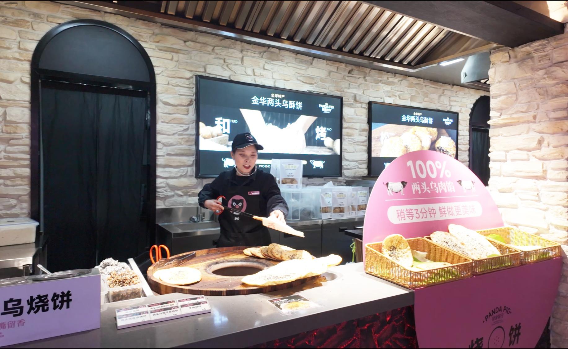 而在金華服務區,這一理念更為具象。通過將農產品與地域文化、旅游體驗深度綁定,這里將簡單的“買特產”升級為沉浸式的“逛展銷”。金華服務區聚焦金華兩頭烏這一全國農產品地理標志,將整個空間打造成以“熊貓豬豬”為主題的“樂園”。