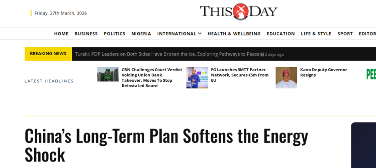 無獨有偶,尼日利亞《今日報》報道稱,中東局勢惡化令全球能源市場陷入困境,多國在油價飆升中承受重壓。在這場風暴中,有一個國家顯得格外從容——中國。文章認為,中國能源戰(zhàn)略不僅有效拓展了可再生能源利用規(guī)模,更在相當程度上降低了對海外油氣的依賴。中國的實踐為其他發(fā)展中國家展現(xiàn)了擺脫能源依附、實現(xiàn)自主發(fā)展的可行路徑。