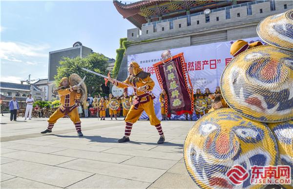 藤牌操表演 江信恒攝 平潭藤牌操,是嵐島獨有的民間藝術體育活動,其發源于明朝名將戚繼光研創的戰術——“鴛鴦陣”,后逐漸演變為“藤牌操”,至今已有超過450年的歷史。 明嘉靖年間,一股倭寇竄踞海壇,百姓深受其害。戚繼光部入嵐駐守,遂將藤牌操傳與當地官民,以抵御外敵,自此藤牌操正式傳入平潭。 民國初年,藤牌操的主要習練者從軍隊轉移至民間。彼時,平潭疫病橫行,匪患頻仍,民間遂興起大練藤牌操的熱潮,以達到驅邪除病、健身壯體的效果。 隨后,當地著名武師、藤牌操手陳錦和引進戲劇、體育以及其他流派武術等元素,對藤牌操進行大刀闊斧式的改革,逐步形成了一種融技擊、體操、舞蹈為一體的民間藝術,開創了現今藤牌操的表演“范式”,并逐漸發展為極具舞蹈感的“藤牌舞”,成為傳統節慶、寺廟慶典的必備表演節目。 平潭藤牌操所使用的武器分為長兵器、短兵器,而“藤牌”則是一面藤制盾牌,取材于柔韌性強、抗打擊的老藤條,盾上畫有一只威風凜凜的虎頭,主要起到“震懾敵人”的作用。此外,藤牌操的伴奏歌曲以打擊樂為主,曲調明快,能夠渲染強烈的戰斗氣氛。 表演時,一般由40名左右的表演者上臺演出,分為兩列對壘,互相攻守。表演者們右手持兵器,左手執藤牌,一邊變換陣形,一邊“對舞”,其表演形式注重隊形編排和空間的層次感,通常先是以陣法演練展開,繼而進行單打、雙打和連環打,最后以十面埋伏陣勢結束,傳遞出強烈的畫面感。 2008年3月,平潭藤牌操入選福州市第一批非物質文化遺產名錄。2017年1月,平潭藤牌操被列入第五批省級非物質文化遺產代表性項目。 近年來,平潭藤牌操逐步成為嵐島一張閃亮的文化名片,開始頻繁在重大場合中亮相。2011年2月,平潭藤牌操表演隊參加閩臺民俗文化節,與臺灣少數民族代表隊同臺獻演;2012年1月,央視國際頻道來嵐錄制節目,并全程直播藤牌操表演;2017年9月,中國—小島嶼國家海洋部長圓桌會議期間,平潭藤牌操為參會嘉賓獻上精彩表演。 |