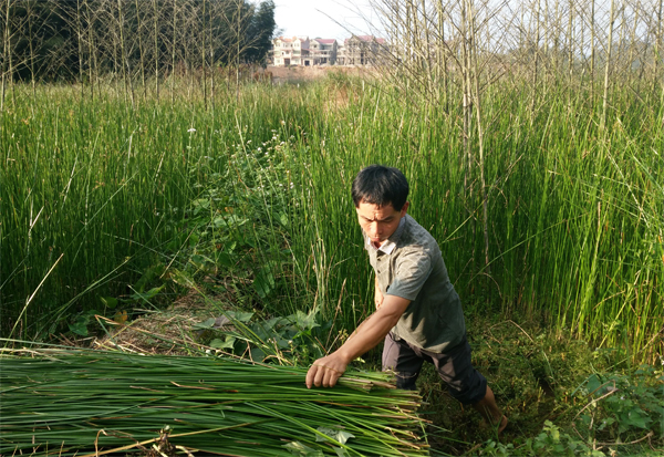 割草工人收割莞蒲草。 受訪者供圖 編織貢川草席的席草——莞蒲草,對土壤的要求特別高,需種植在特有的沼澤山壟田里,田里常年要有山泉水流動,保證土壤的濕度,長出的莞蒲草纖維長,柔韌性強,不易斷裂。貢川草席的鼎盛時期,當地種有50多畝席草,有23戶人家打草席。每戶一天打一條草席,每天就有23條,年產七、八千條。 時至今日,貢川僅有幾家古老的編席作坊散落在大街小巷。它們都是家庭式的,操作者也是些懷舊的老人。傳承者們用編席機和嫻熟的技藝編織著一曲曲“非遺之歌”,保護傳承貢席文化的同時促進了產業扶貧,促進了特色產業的發展。 |
