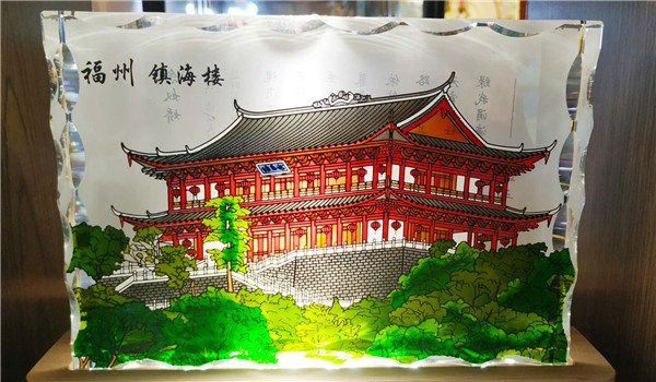 以鎮海樓為元素的玻璃畫。東南網記者 林先昌 攝 手工彩繪玻璃工藝在福州已有上百年歷史,這門技藝隨著時間流逝,淡出了人們的視線。在福州三坊七巷古街上,曾有一家名為“永嘉號”經營彩繪玻璃的老店,是福州城最早經營玻璃的店鋪。 一幅手工彩繪玻璃畫創作要經過10道工序。先用針筒擠上顏料描輪廓,而后用畫筆填顏料,再用刀片一刀刀地將顏料推開。推顏料的過程很重要,要講究畫面層次、顏色的過渡,才能“演繹”出意境。一系列步驟完成后再進行燒制。而這些技法是要經過多年研究才能成熟運用于一幅手工彩繪玻璃上。 近年來,一些創作者將中國傳統文化元素繪制在玻璃上,得到了市場認可和檢驗,這些具有濃濃中國風的彩繪玻璃產品受到許多商家和民眾的喜愛。 2019年,手工彩繪玻璃被列入第六批福建省級非物質文化遺產代表性項目名錄。 |
