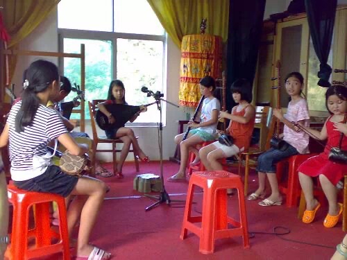 后排左數第四是莎莎 受訪者供圖 莎莎名叫李莎莎,是土生土長的泉州晉江人,90后的她,學唱南音已經有20個年頭。她還記得,最初學南音那年,她剛9歲。 “我奶奶喜歡看戲,我小時候經常跟奶奶去我們當地的南音社去看戲,開始我就是跟著去玩的?!鄙f,起初,她只是覺得南音社里一群人聚在那里很熱鬧,而且每次去都有糖果吃。 但時間久了,耳濡目染之下,幼小的莎莎就成了南音社的一名小學員?!懊刻煜挛绶艑W后和周末,都要去社團學習。”跟學習其他戲曲一樣,學唱南音也要經歷一段艱難的蛻變過程,這個過程漫長而又痛苦。 “南音的曲子最短的也有四五分鐘,長的有半個小時以上,所有的唱詞都要背下來。還要學習琵琶、二弦、三弦等樂器?!鄙貞浾f,當時,自己每次都提前一個多小時到課堂,“一個人練譜子、背唱詞,就是想比別人記得快一點”。 但慢慢地 ,和莎莎一起學南音的小姐妹陸續離開了南音社?!白疃嗟臅r候二三十個人,學到最后,只剩我們8個?!鄙f,堅持學下來的人少,除了學習難度大、需要背的東西多外,還有一個重要的原因,就是南音實在太古老了。 “這種傳統的劇種很多人聽不來,不喜歡這種咿咿呀呀的唱腔,小時候就經常被人家取笑。”莎莎還記得。不僅如此,在泉州當地,有在葬禮上請南音社團演唱的習俗。因此,一度南音被一些人認為是不入流的,而對于演唱南音的人,也難免會帶有偏見。 盡管如此,莎莎還是堅持了下來,她花了七八年的時間,學會了南音的6種唱法和5種主要樂器。到現在,她能熟練演唱近80支南音曲目。 一度放棄南音 卻在新媒體上打開新大門