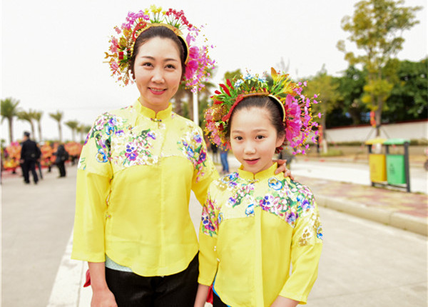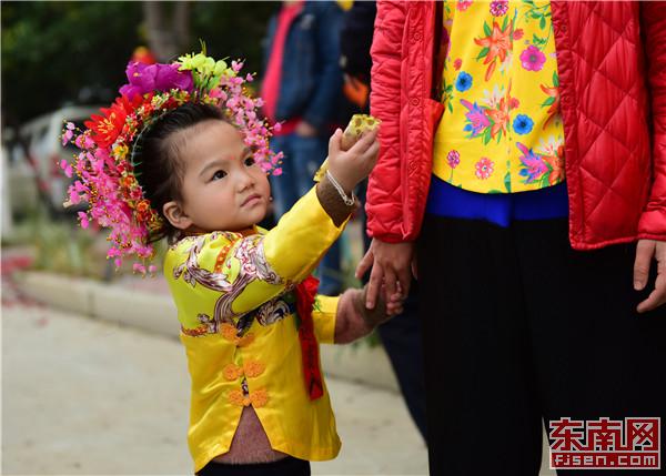 隨著時間流逝,穿著蟳埔女傳統服飾的年輕人越來越少,但不少老人還是有意識地為孩子穿上傳統服飾,希望傳承這一文化。東南網記者 林婕 攝 正因蟳埔女服飾承載的意義重大,這份文化符號背后的傳承就顯得彌足珍貴。黃晨感慨道,以前的蟳埔女,自出生后家中便開始準備傳統服飾,從小穿到大。如今在村中,穿著蟳埔女傳統服飾,盤頭戴簪花圍的多為中老年女性,年輕一代穿著傳統服飾的人數十分少,“很多人連穿都很少穿,更別提能制作這些傳統服飾了。” 近年來,蟳埔女習俗在多方宣傳下得到了越來越多的關注,蟳埔女這一獨具特色的形象也吸引了不少人的注意,在多個民俗文化節上均能看到身著蟳埔女傳統服飾的年輕女孩致力宣傳這一形象及背后的民俗文化。但熱鬧之余,愿意真正學習蟳埔女服飾制作的人依然是少之又少,“曾經有人來找我學過這項技藝,但是學過一段時間后還是選擇放棄了。”談及此事,黃晨露出無奈的笑容,“現在讓大家長時期待在一個房間里縫縫剪剪,很多人可能都做不到。” 走進高校 傳統技藝喚醒傳承希望