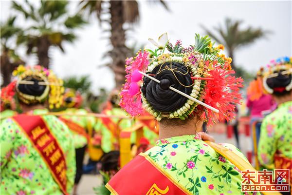 蟳埔女頭飾 東南網記者 林婕攝 今年4月,黎明職業大學將校內多個大師工作室聚集起來,打造成海絲文化集鎮,并設立了海絲文化展廳,黃晨的蟳埔女服飾大師工作室就在其中,他也將部分蟳埔女服裝與頭飾作品置于展廳,供學生參觀交流。“這種走進學校的模式,確實取得了很好的效果。”黃晨表示,自蟳埔女服飾制作文化設置到學校當中后,不少學生表示出了強烈的興趣,“有很多學生會特地跑到我的服飾傳習所,跟我學做簪花圍等,有部分人也逐漸產生學習蟳埔女服飾制作的意愿。” 技藝喚醒傳承希望,黃晨依舊不敢懈怠,“學習蟳埔女服飾制作并非一朝一夕可做到,這項技藝的傳承發揚也需要付出很多心力,未來的路還很長。”談及未來,他表示在延續與學校間交流合作的同時,還將致力于爭取更多面向社會的平臺,將蟳埔女習俗中的精髓魅力傳播出去。(東南網記者 傅心玫 陳培源)