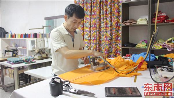 蟳埔女服飾寬松美觀、方便勞作,也成為當地一大文化特色。 東南網記者 林婕 攝 “蟳埔女的服飾,其實從一開始就是為了方便勞動而設計的。”黃晨告訴記者,蟳埔女所著衣服多由棉麻粗布制成,寬松舒適,上衣為斜襟、七分寬袖、右衽,俗稱大裾衫,褲子為七分闊腿褲,這樣的設計便于在海灘上勞作,挑擔行走又輕松自如,“以往的衣服以藍色、灰色、黑色為主,樸素又耐臟,而頭發也是刻意盤成一圈,再穿一根骨簪固定,防止低頭時長發垂下影響勞作。” 黃晨表示,蟳埔女服飾已有數百年歷史,以往均為手工制作,工序精致。1973年,11歲的黃晨師從自己的舅公,開始學習蟳埔女服飾制作,“一開始也是想著學一樣手藝,學著學著就越來越感興趣,三年多后,我就開始獨立進行制作了。”以往蟳埔女服飾為純手工制作,廣到畫線剪裁、細到每處針線縫合都需要依靠雙手完成,這一過程需要花費較長時間,對制作者的細心與耐性都是一份考驗,“有時一站就是幾小時,尺寸也不容有一絲差錯。”到1978年后,同期學習這項技藝的20多人陸陸續續轉向了其他行業,只有黃晨選擇了堅守,“這種傳統的技藝經過很長一段時間流傳下來,現存的就是精華,需要有人守護。” 幾盞茶后,黃晨來到制衣間制作一件衣服。蟳埔女服飾的制作對布料有一定要求,“一般使用棉布或者麻布制作,經薯榔汁等染成深色,以防在勞作過程中被海水侵蝕或被陽光暴曬褪色,后來生活方式變得多樣了,布料顏色也豐富了。”橙黃色的棉布根據顧客自身的尺寸畫好線后裁剪,布料裁剪尺寸一般不能太長太寬,以防海邊勞作時被漁網纏住,但又要設計得寬松,方便彎腰伸手等,這就要求制衣者具有豐富的經驗。裁剪后的布料邊角用漿糊粘合固定后進行熨燙,如此反復多次,再使用縫紉機縫制。一個多小時間,黃晨在熨衣的桌板與縫紉機前來回走動,一件上衣才初見雛形。“這還不是最費時間的,縫合衣服上的盤扣還需要兩三個小時。”黃晨介紹道,如今制作一件衣服需要花費5個小時左右,包含畫線、裁剪、粘合、熨燙、縫合等步驟,有時一天只能做上一套蟳埔女服飾。精細繁雜的工序耗費時間長,但成品頗受顧客喜愛,“手工的衣服布料穿起來都比較舒適,其次用雙手做出來的東西,不大容易壞,跟機器做出來的也還是不一樣的。” 懷揣初心 數十年堅守期盼后繼有人 一套傳統服飾,既體現了蟳埔當地的風土人情,也成為代代蟳埔女性勤勞奮斗的縮影。2007年,黃晨在豐澤文體部門的支持下對蟳埔女服飾制作中心進行改造,成立了蟳埔女傳統服飾傳習所,希望能將此作為展示和交流蟳埔女習俗的重要窗口。 不同材質的布料,制作精致的成衣,色彩豐富的簪花圍頭飾,防水輕便的腰包,乃至形象逼真的蟳埔女人偶……在蟳埔女傳統服飾傳習所,記者見到了各式各樣的蟳埔女服飾,所有的服裝成品均為黃晨親手制作。“有些衣服中其實都藏著故事。”黃晨指著一件由兩種花色拼接而成的衣服介紹道,“以往人們衣服都是一種顏色,會出現這種拼接的衣服,主要是因為很多蟳埔女在挑擔做事時肩頭部分容易磨破,但又舍不得其他地方完好的布料,就干脆拿另一塊布料拼接在一起。”寥寥幾句,便將蟳埔女辛勤樸素的形象勾勒而出。