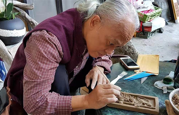 陳逢顯展示他的微雕及磚雕作品。福建日報記者 陳夢婕 攝 除了微雕,陳逢顯孜孜以求的還有用紅土燒磚弄瓦。這次來福州參展,他也帶來了他的磚雕作品,如傳統的硯臺用紅泥燒制而成,其上雕琢有憨態可掬的動物,讓許多民眾愛不釋手。 1997年,陳逢顯創辦了他的私人博物館毫芒雕刻館,由此開始嘗試磚雕藝術,并在博物館開設磚雕DIY專區。他說,這樣做最初是為了吸引更多民眾走進博物館,同時也接觸磚雕這門傳統工藝。幾個月的嬰兒,用小腳丫輕輕一按;百歲老人,用手掌一壓。這些對于家人來說,都是最珍貴的紀念。在他的博物館內,游客可以用磚雕工藝自己制作鎮紙、硯臺、掛飾等。 磚雕藝術在臺灣已經有幾百年歷史,但近30年來,陳逢顯明顯感覺這一技藝的式微。于是,他開始致力于把磚雕藝術推廣到基層社區。新店區下城里是位于臺灣新北市的一片老城,這里有一條1.5公里的田間小徑,因兩側用紅磚裝飾有各式壁畫顯得獨具一格。陳逢顯告訴記者,他與下城社區的400多個居民一起打造了這一座磚雕墻。400多個居民都有自己的想法,他們把它畫出來,然后再由陳逢顯把它以磚雕的形式設計出來。走過這條磚雕墻,游客可以了解這個社區有三合院、涂潭山,還有美麗的荷花池……他把這里的風土人情“鑲嵌”在墻壁上。 磚雕墻不但美化了社區,還帶熱了觀光業。讓人感動的是,有的老人已經過世了,但是他的子女常常會來這里撫摸他生前的作品以此緬懷;有的小朋友長大了,還會帶自己的朋友來看小時候的作品,或者看看自己兒時的夢想是否實現了…… “泥土全世界都有,在我心里只有祖國的泥土最芬芳。”陳逢顯說,秦風漢韻浸潤在泥土中,跟老祖宗留下來的古老文明一脈相承,“希望幫助每個愛玩泥巴的人,記住中華文化”。 這次來福州,陳逢顯的毫芒雕刻館還與福州市壽山石雕刻藝術研究會簽訂合作協議,推動微雕文物工法技藝和壽山石雕技藝交流切磋。常年往來于兩岸的他希望能把自己畢生的手藝和文創經驗也帶到大陸。(福建日報記者 陳夢婕) |