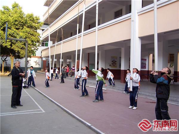 方振南在建甌芝山中心小學指導學生挑幡有十個年頭了。每天放學,芝山中心小學的孩子們都會跟著方振南練一個多小時再回家。經過多年的堅持和努力,學校的少兒挑幡隊員們多次應邀外出表演,成為該校辦學的一大特色項目。