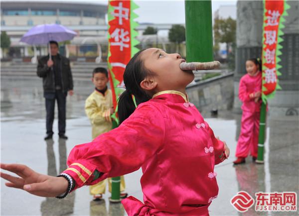 老方教學生練習挑幡。 魏劍生攝 “要讓這些民間技藝傳承下去,當然要從孩子開始。”老方說。為此,他在建甌芝山中心小學指導學生挑幡有十個年頭了。在學校和家長的支持下,每天放學,芝山中心小學的孩子們都會跟著方振南練一個多小時再回家。經過多年的堅持和努力,學校的少兒挑幡隊員們多次應邀外出表演,成為該校辦學的一大特色項目。 “就這樣教會一批走了一批,這么多年,可能教過800多個學生了,我也沒啥遺憾的,至少這項技藝在我手里算是發揚光大了。”老方說道。 吳濤:新生代的傳承者