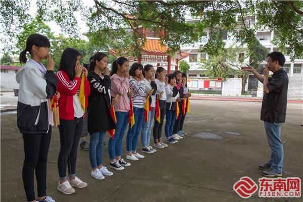 謝秀山在公園練習(xí)樹(shù)葉吹奏。 東南網(wǎng)記者 李凌生 攝 同樣是邱少春的弟子,與鄒開(kāi)煌不同的是,謝秀山在年輕時(shí)就已經(jīng)學(xué)會(huì)了樹(shù)葉吹奏?!半m然也會(huì)吹小曲,但水平和邱老師差太遠(yuǎn)了!”正是在鄒開(kāi)煌的引薦下,謝秀山認(rèn)識(shí)了邱少春并拜入門(mén)下?!扒窭蠋煾嬖V我怎么處理連音、停頓等技巧。”在謝秀山看來(lái),除了爐火純青的吹奏技藝,更難能可貴的是,邱少春總結(jié)提煉出了一套自己的教學(xué)方法,而這是他與其他吹葉藝人最大的差別。 “如果沒(méi)有理論指導(dǎo),樹(shù)葉吹奏技巧很難掌握,技藝的傳承也比較困難?!蓖ㄟ^(guò)二十多年的實(shí)踐和摸索,邱少春逐漸形成了一套較穩(wěn)定、科學(xué)的樹(shù)葉演奏技藝及教學(xué)方法。“我把整套體系分為呼吸、選葉、演奏、概念、意念五大環(huán)節(jié),幫助學(xué)員全面系統(tǒng)地了解樹(shù)葉吹奏。”邱少春在自己的樹(shù)葉吹奏培訓(xùn)班大力推廣這套教學(xué)方法,許多學(xué)員在幾個(gè)月內(nèi)就吹出了完整的曲調(diào)。 今年暑假,由邱少春主講的樹(shù)葉吹奏輔導(dǎo)班如期在上杭舉行。近一周的時(shí)間里,輔導(dǎo)班吸引了來(lái)自全國(guó)各地的學(xué)生、教師、家庭主婦等不同職業(yè)近百名吹葉愛(ài)好者,而這樣的培訓(xùn)已經(jīng)連續(xù)開(kāi)展了3年。 “樹(shù)葉吹奏取材簡(jiǎn)單,入門(mén)門(mén)檻低,非常適合民間推廣?!鼻裆俅赫f(shuō),樹(shù)葉吹奏源于民間,如今能夠回歸民間,豐富群眾的藝術(shù)生活,他樂(lè)見(jiàn)其成。 建基地 揚(yáng)技藝 今年國(guó)慶期間,一部由上杭縣樹(shù)葉吹奏協(xié)會(huì)傾力打造的樹(shù)葉吹奏《我和我的祖國(guó)》原創(chuàng)視頻在當(dāng)?shù)嘏笥讶V為流傳。令出品方?jīng)]想到的是,這部獨(dú)特的作品迅速在網(wǎng)上躥紅,幾天時(shí)間里先后被市里和省里的官方媒體轉(zhuǎn)載,并最后被新華社視頻部編輯采用。 在這部原創(chuàng)視頻里,邱少春帶著上杭縣第二實(shí)驗(yàn)小學(xué)的學(xué)生和一群吹葉愛(ài)好者擺出不同造型,用深情款款的“葉笛”曲調(diào)表達(dá)對(duì)新中國(guó)成立70周年的祝福。 “2017年,我們率先將樹(shù)葉吹奏作為特色教學(xué)項(xiàng)目引進(jìn)學(xué)校,并成立了傳承基地。”上杭縣第二實(shí)驗(yàn)小學(xué)黨支部書(shū)記鄧長(zhǎng)新說(shuō),學(xué)校為樹(shù)葉吹奏配置了專門(mén)的老師、編制了校本教材,還成立社團(tuán)每周為孩子們開(kāi)展培訓(xùn)。正是基于良好的教學(xué)基礎(chǔ),該校在師生中分別成立了幾個(gè)較為穩(wěn)定的表演團(tuán)隊(duì),其中更有30多名教師成為縣樹(shù)葉吹奏協(xié)會(huì)的骨干成員。