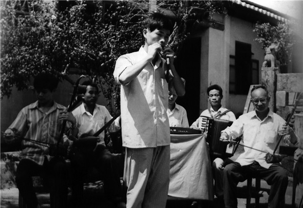 邱德三1990年的演出照。(上杭縣樹(shù)葉吹奏協(xié)會(huì)供圖) “蘇家小女舊知名,楊柳風(fēng)前別有情。剝條盤(pán)作銀環(huán)狀,卷葉吹為玉笛聲。”在中國(guó),樹(shù)葉吹奏技藝淵源流長(zhǎng),早在唐代就有相關(guān)文獻(xiàn)記載。從中原傳入閩西后,樹(shù)葉吹奏形成了獨(dú)特的客家演奏風(fēng)格。 在上杭廬豐,樹(shù)葉吹奏是當(dāng)?shù)氐膫鹘y(tǒng)技藝。邱少春的高祖父邱鳳章、祖父邱玉貴均是擅長(zhǎng)吹葉的民間藝人,而他畢業(yè)于山東師范學(xué)院藝術(shù)系的父親邱德三,更是于1984年在《人民音樂(lè)》發(fā)表論文《怎樣吹樹(shù)葉笛》,首次對(duì)樹(shù)葉吹奏開(kāi)展理論研究。 生于吹葉世家,邱少春十歲左右就開(kāi)始隨父親學(xué)習(xí)樹(shù)葉吹奏,21歲與父親同臺(tái)表演并獲獎(jiǎng)。不過(guò),由于年輕氣盛,當(dāng)時(shí)的邱少春對(duì)樹(shù)葉吹奏這種“鄉(xiāng)野小技”并沒(méi)有多大的熱情。1981年,邱少春以優(yōu)異的成績(jī)考上福建藝術(shù)學(xué)校二胡演奏專業(yè)?!爱?dāng)時(shí)掌握的吹葉技巧只是皮毛,在藝校學(xué)習(xí)時(shí)就把它放下了?!鼻裆俅赫f(shuō),在外求學(xué)期間父親常常與他有書(shū)信往來(lái),而幾乎每一封家書(shū)都會(huì)提到樹(shù)葉吹奏。 然而,就在邱少春在二胡方面取得一定成就之時(shí),父親突然病故。父親去世后,邱少春的母親轉(zhuǎn)交了一份珍貴的遺物,這些都是邱德三十幾年來(lái)收集、整理、撰寫(xiě)的有關(guān)樹(shù)葉吹奏資料,“看著這些發(fā)黃的文稿,我覺(jué)得分量太重了!”從那時(shí)起,邱少春一刻也沒(méi)有放棄對(duì)樹(shù)葉吹奏的追求。 樹(shù)葉作為一種特殊樂(lè)器,演奏形式簡(jiǎn)單,但音階和音準(zhǔn)都很難把握。為了提高吹葉水平,邱少春除了潛心研究父親的文稿,還向管樂(lè)專業(yè)老師請(qǐng)教氣息技法。而在業(yè)余時(shí)間,到山林間練習(xí)吹葉則成為他最主要的生活內(nèi)容。經(jīng)過(guò)刻苦的鉆研和多年的錘煉,邱少春的樹(shù)葉吹奏技藝不斷取得新的突破。