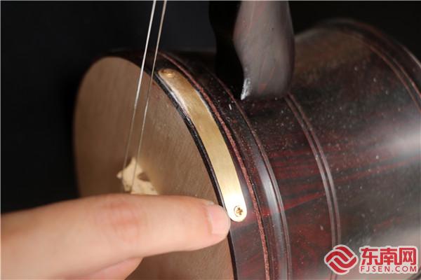 隨著現代工藝技術的發展,陳金福不斷改良莆仙傳統樂器的制作工藝,在胡類樂器的琴筒上方拉弦處加上了銅片,并加大了琴桿的弧度,減少琴弓對琴筒的磨損,此外,他更是推陳出新,加入了移動式筒軸,方便演奏者調音。