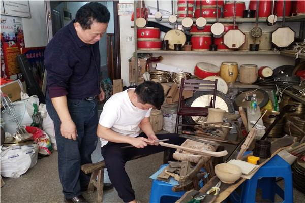 陳金福父子制作樂器。東南網記者 梁麗萍 攝