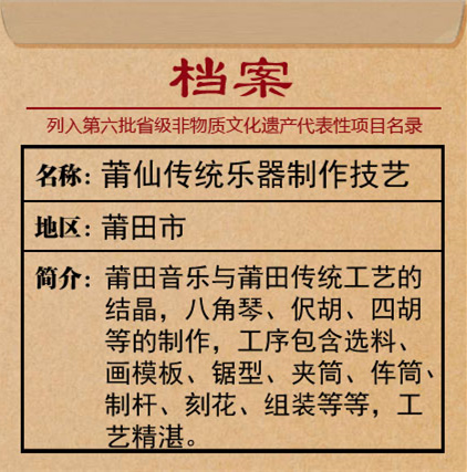 莆仙傳統樂器獨特琴頭款式——蝦尾頭。東南網記者 楊超斌 攝 陳氏家族傳統十音樂器制作技藝代代傳承,分枝開業。他們不忘初心,堅守傳統,在沿襲古法的基礎上傳承和發展著祖輩留下來的技藝。陳金福告訴記者,新中國成立后,陳氏家族第四代傳承人陳滿堂、陳如玉推出簡化版十音樂器,降低成本、物美價廉、推動樂器制品大眾化,傳統制作技藝和造型傳承至今。現在的制作工序包括選料、畫模板、鋸型、夾筒、伡筒、制桿、刻花、磨光打蠟、組裝、試音等。 同樣的,陳金福也繼承了先輩們不斷探索創新的精神,做“守藝人”,更做“創藝人”。音色是一把樂器的重要特點,是樂器品質的關鍵,而莆仙傳統樂器的音腔主要由發音板決定,其材料密度、軟硬程度都會影響到發音的音色,陳金福在經過長期摸索試驗后,選取了延展性好、不易開裂的河南蘭考泡桐板為發音板,進一步增強音質以及提高音色的變化空間。 除了在選材上“斤斤計較”,隨著現代工藝技術的發展,陳金福也不斷改良莆仙傳統樂器的制作工藝,更加先進的制作理念和技術帶來了更加精美的樂器。陳金福在胡類樂器的琴筒上方拉弦處加上了銅片,并加大了琴桿的弧度,減少琴弓對琴筒的磨損,此外,他更是推陳出新,加入了移動式筒軸,方便演奏者調音。今年,他被莆田市文化與旅游局評為莆仙傳統樂器制作技藝非遺代表性傳承人。 子承父業,赤子拾遺