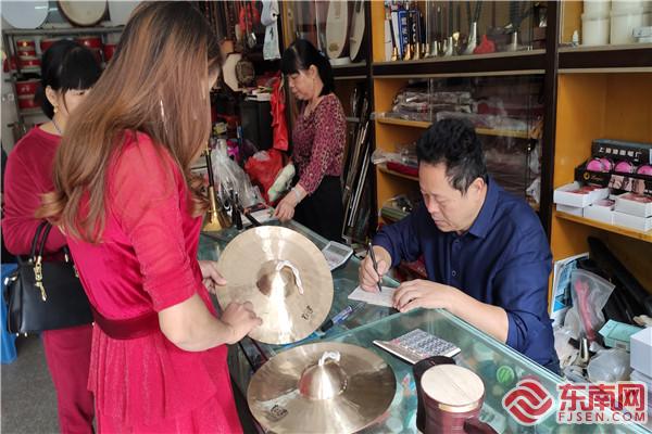 十里八鄉的人們前來購置樂器。東南網記者 楊超斌 攝 陳金福從小就跟著爺爺、父親學習制作莆仙傳統樂器,從打魚膠到制器型,15歲時終于能獨立完成這一技藝后,開了一家屬于自己的莆仙傳統樂器制作店——金福樂器店。轉眼間陳金福已到花甲之年,這家作坊也屹立了47個年頭。 “這些都是我們莆仙地區才有的樂器,別的地方可是看不到的啊”,采訪時,陳金福隨手拿起幾把伬胡、八角琴等樂器讓記者觀賞并告訴記者莆仙樂器與其他地區民族樂器的區別主要在于“品種”和“調式”,伬胡、八角琴、佬胡等樂器都是莆仙地區特有的樂器品種,獨樹一幟,調式上也別有一番風味,主要以F調為主,吹拉彈唱時以平調較多,音色質樸優美。 隨后,陳金福又拿起木鋸、刨子、銼子等工具向記者演示制作樂器的技藝,刨、磨、鉆孔、打眼、擦……只見一道又一道工藝流程環環相扣,如行云流水,渾然天成。