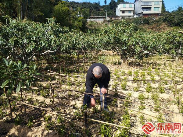 林文喜查看馬藍(lán)。 東南網(wǎng)記者 楊超斌攝 冬月里,和煦的陽光灑在仙游縣書峰鄉(xiāng)成片的枇杷林上空,枇杷樹上結(jié)滿了一簇簇枇杷花。書峰鄉(xiāng)被譽(yù)為“枇杷之鄉(xiāng)”,枇杷是書峰的一張名片。而在茂密的枇杷林下,則藏著書峰鄉(xiāng)另一個(gè)特色產(chǎn)業(yè)。 走在枇杷樹叢下,成片低矮的綠色植物躍然眼前,這是當(dāng)?shù)厮庌r(nóng)栽培的馬藍(lán)種苗。據(jù)藥農(nóng)介紹,傳統(tǒng)馬藍(lán)種植對(duì)自然氣候條件的要求較為“苛刻”,既怕持續(xù)高溫、日灼,又怕霜凍嚴(yán)寒,放在枇杷樹下套種,可遮陰、防凍,又能充分利用山里有限的土地資源。“有的種苗沒種在樹底下就得用遮陽網(wǎng)遮住,根據(jù)天氣的變化情況,靈活揭蓋。” 這一株株看起來很不起眼的馬藍(lán)究竟有何特殊價(jià)值,讓當(dāng)?shù)剞r(nóng)民如此上心?