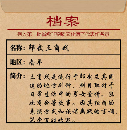 三角戲從產生伊始迄今有400余年,是由花鼓戲、黃梅戲、采茶戲、邵武民歌融匯演變而成的地方劇種。