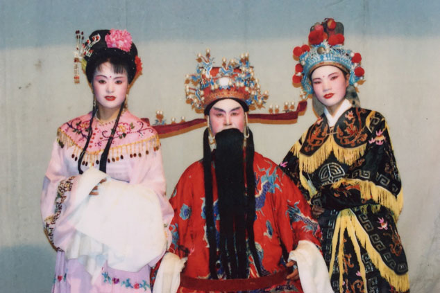虞東生和徒弟合影。受訪者供圖 “之所以叫做三角戲,是因為原先只有生、旦、丑三個角色。”虞東生一邊搬出他的“寶貝”,一邊和記者解釋道:“它是由花鼓戲、黃梅戲、采茶戲、邵武民歌融匯演變而成,講的是老百姓的日常生活,主角們都是農民、小商販、土財主之類,很受老百姓喜歡。”出生于1944年的虞東生,自小就與戲結緣,介紹起三角戲來,更是如數家珍。 虞老說,他從小就是個“戲迷”,常常在戲臺旁邊看邊模仿。“10歲時,我整天泡在村里的戲團學戲。”虞東生回憶,“雖然年齡小,但是我記性好,學唱腔、動作、樂器都比大人快。跟黃師傅學習1年后,我就能在排戲缺人的時候頂戲,有時候還教大人表演。” 1960年的一個晚上,虞東生到城里觀看越劇后,詢問越團負責人是否收人,得到的回答是“只要女的,不要男的”,難過和失落涌上心頭。當時,他便抱定決心一定要進劇團。 “沒過多久,我又找到三角劇團團長黃敏杰。他說進劇團要考,我學過戲當然不怕考試!”下半年,虞東生便抱著父親買的二胡進了邵武縣三角劇團。 進劇團后,虞東生追隨羅雪官、付子卿、周老三等師父學習三角戲,以扮演老生為主,也客串些其他角色。由于對樂器的偏愛,他利用業余時間向樂師學二胡、笛子、鑼、鈸、嗩吶等;每到一個地方演出,他還會向當地老人或前輩請教戲藝和曲譜,并把所學的樂譜都記下來。 獨奏一場戲 練“絕活”一心多用