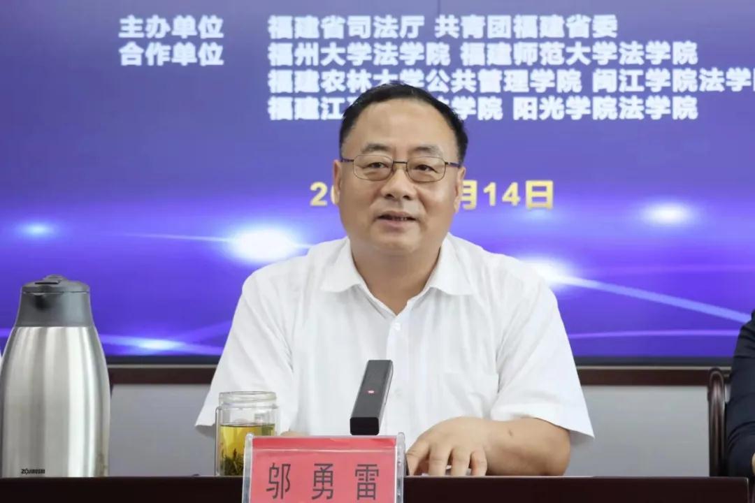 圖片來源:福建省司法廳 5月14日,福建省司法廳與團省委、在榕高校舉辦青年法律診所共建合作協議簽約儀式。省司法廳黨委書記、廳長鄔勇雷,團省委副書記陳怡,省司法廳黨委委員、政治部主任林安泰、副廳長李妙君等省直機關領導,與福州大學、福建師范大學、福建農林大學、閩江學院、江夏學院、陽光學院等高校有關學院領導出席活動。