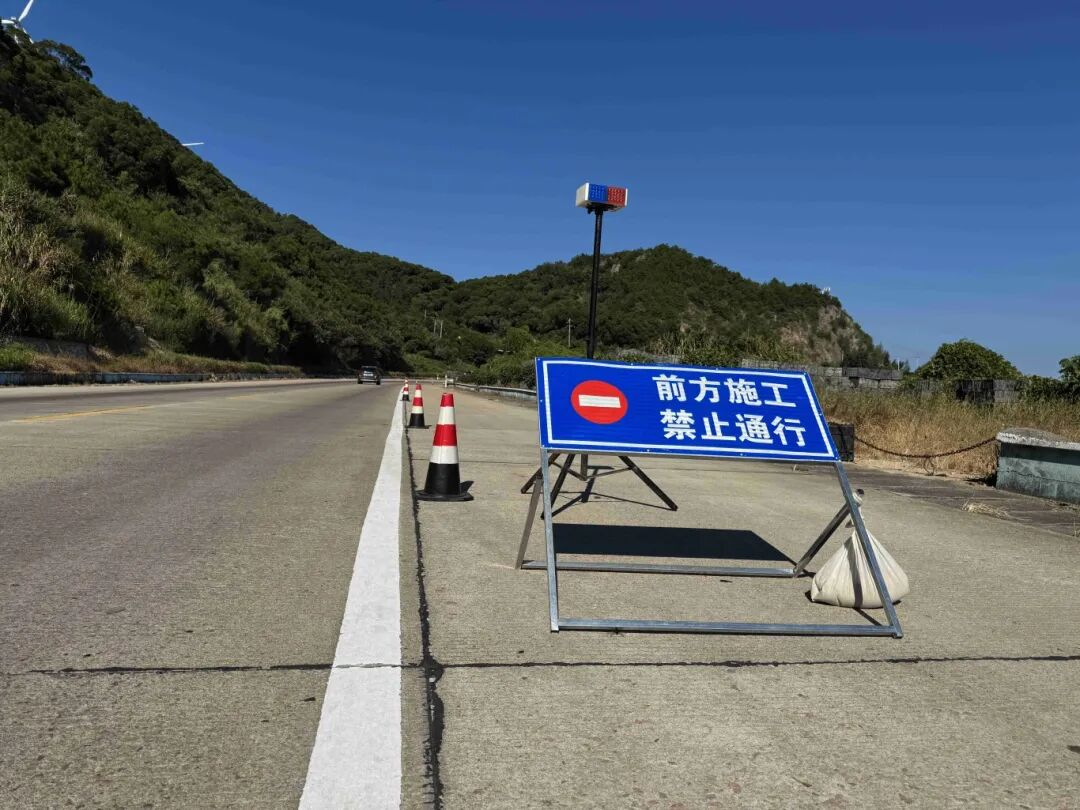 連江公路中心提醒,施工期間,過往車輛及行人注意按交通警示標志減速慢行,確保交通安全暢通。(圖片由連江公路中心提供