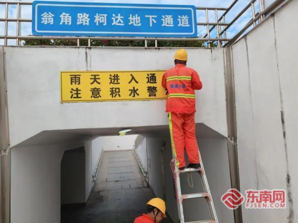 公路部門更換地下通道的安全提示牌(廈門公路中心供圖)