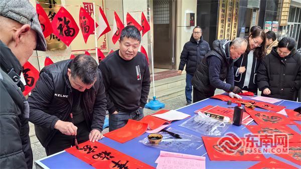 活動現場 林朝楓 攝 東南網2月6日訊 墨香傳情,春聯送福。2月3日上午,三明市大田縣退役軍人事務局組織開展“老兵為我寫春聯”志愿服務活動,以筆墨為媒傳遞新春暖意,弘揚中華優秀傳統文化,彰顯新時代雙擁深情。 活動現場,退役老兵、省市書法協會會員田有標、余昌東等揮毫潑墨,遒勁有力的筆鋒下,一副副飽含祝福的春聯和“福”字躍然紙上。“馬蹄踏雪添春色,鵲舌啼梅報福音”“天賜千祥迎瑞景,門盈百福啟新元……”寓意吉祥、年味濃郁的對聯引得圍觀群眾連連稱贊。