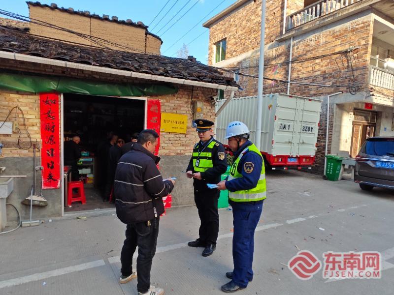 執(zhí)法人員在曹爐村發(fā)放宣傳單。寧德高速公路行政執(zhí)法支隊(duì)供圖